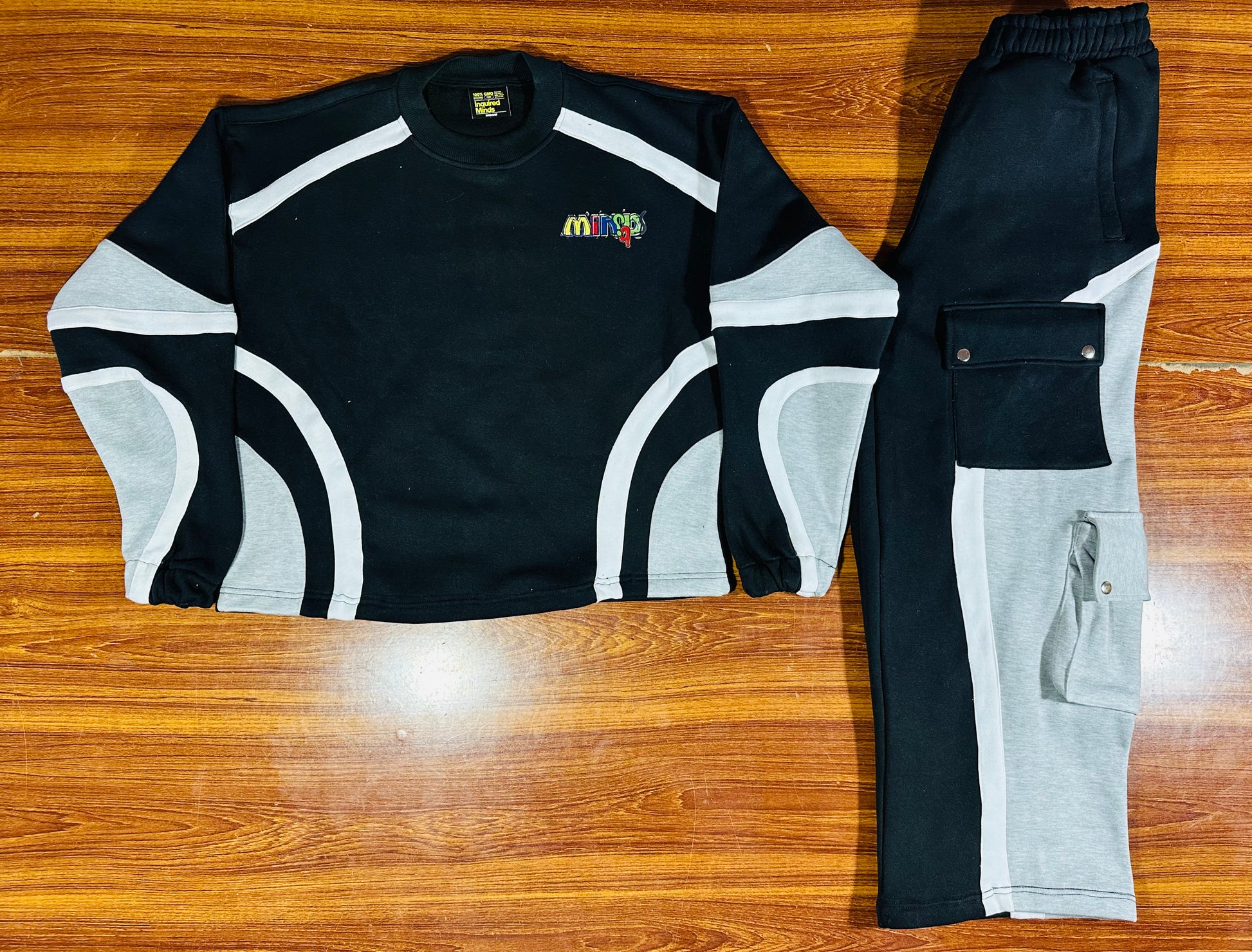 Sweatshirt and cargo pants with plenty of pocket space for nights out in the city these sets are super cozy and fashionable for whatever you take on.